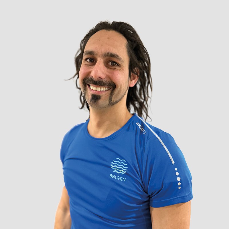På Bølgen er han badevaktinstruktør, og tilbyr PT timer i svømming.